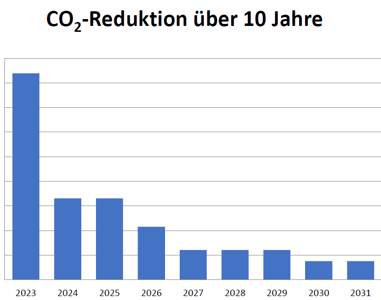 Ein Zwischenziel stellt die Reduktion von 40 % des THG-Ausstoßes innerhalb von 10 Jahren dar.